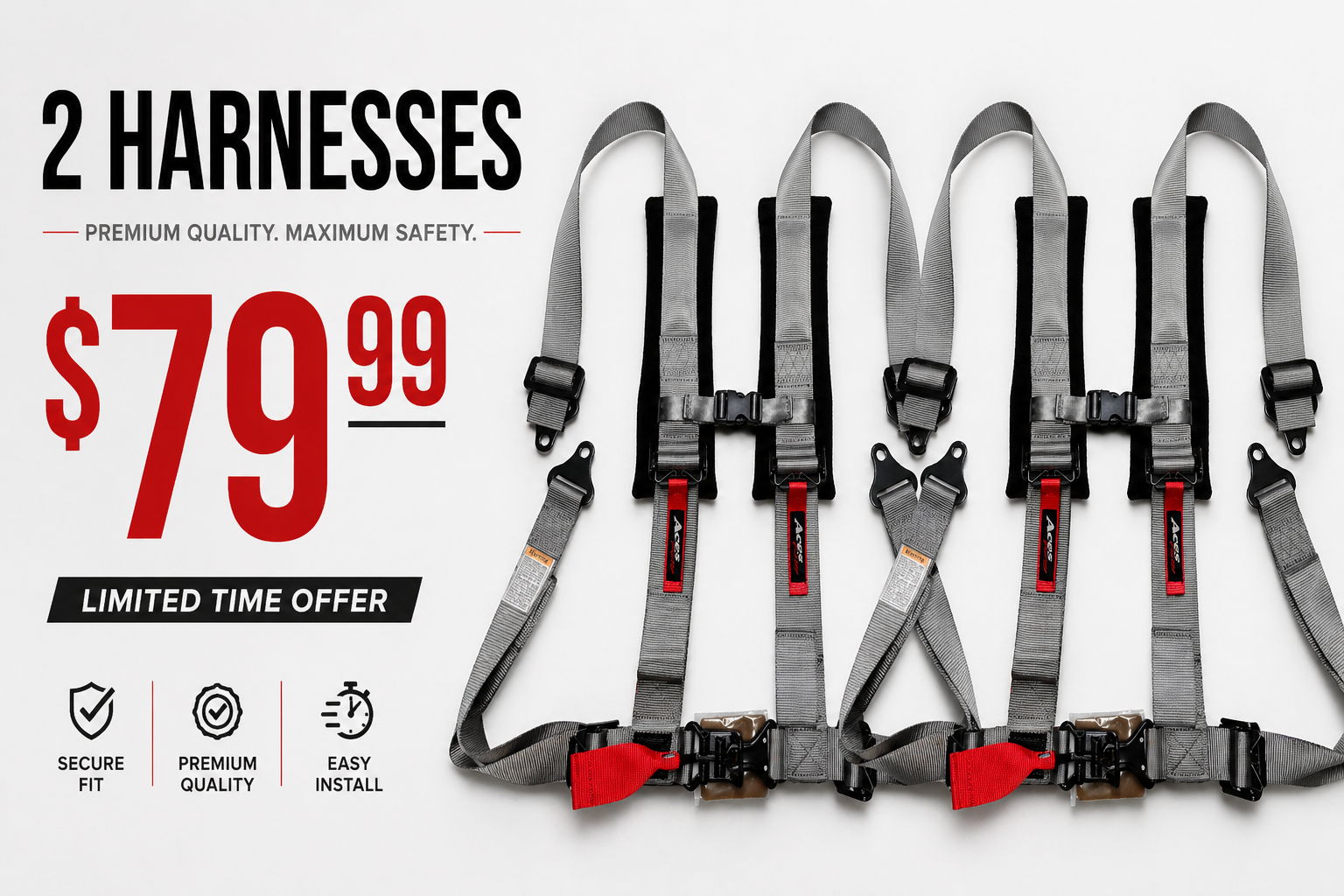 "This pair of front suspension RZR seats has a slot built in for a 5-point harness. These seats have a quilted backing and an internal suspension system with highly bolstered seat bases for security and comfort. They have plastic, molded inserts for the headrest seat belt slots. They use the stock hardware, and will fit most RZR models, but older models will require an adapter kit. Being a two-pack, you actually get a great deal on a pair."