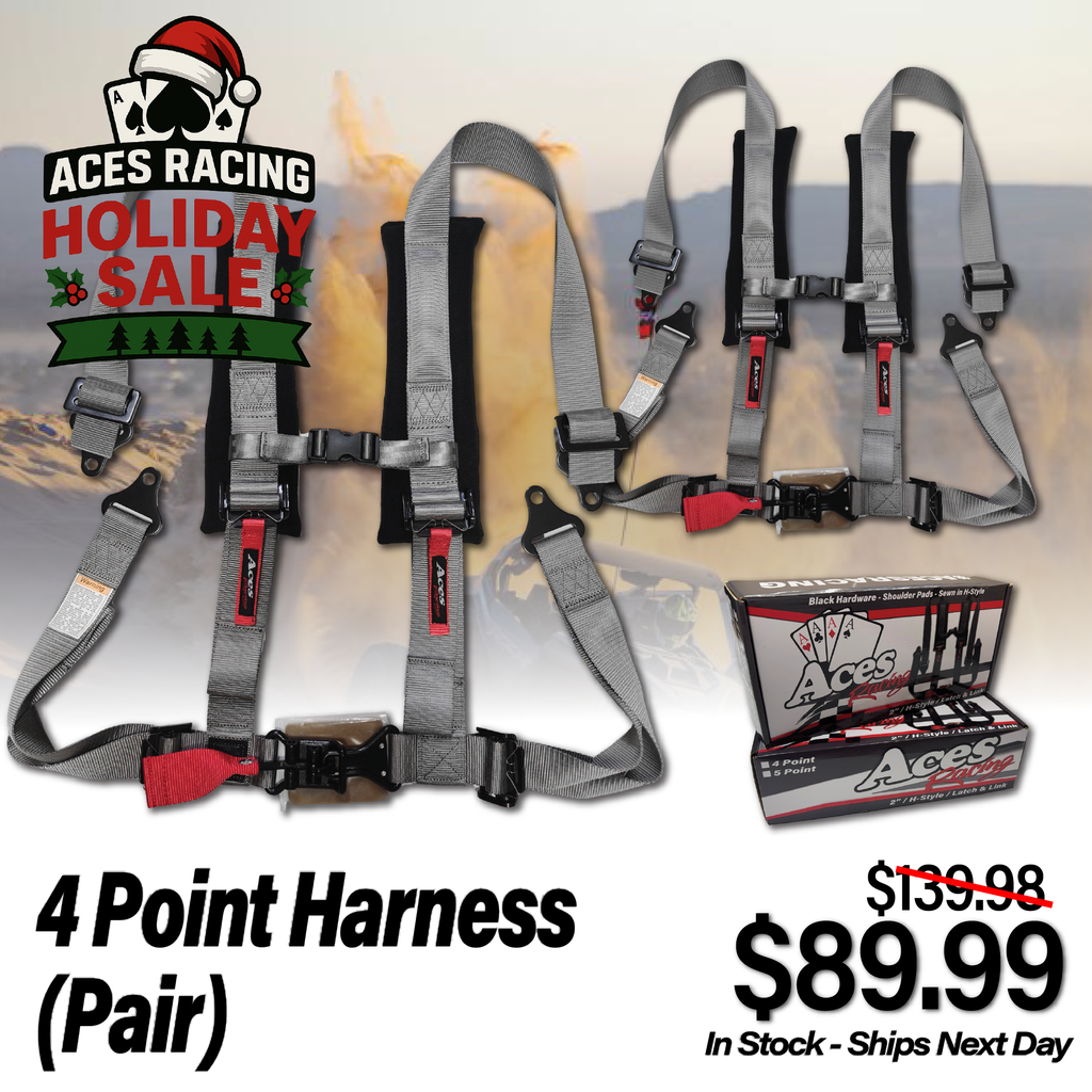 Upgrade your ride with the brand-new Aces Racing 4-Point Harnesses. Designed for maximum safety and comfort, these harnesses are built with 2-inch webbing and padded shoulders for long-lasting durability and comfort on every ride.