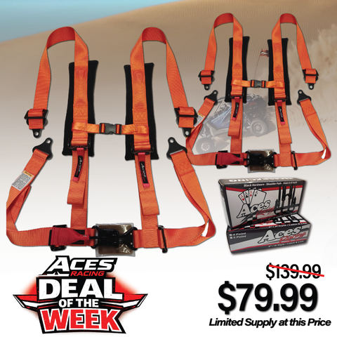 Upgrade your ride with the brand-new Aces Racing 4-Point Harnesses. Designed for maximum safety and comfort, these harnesses are built with 2-inch webbing and padded shoulders for long-lasting durability and comfort on every ride.